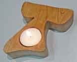 Bougeoir “Tau de lumière” de symbolique franciscaine – Petit modèle chêne foncé